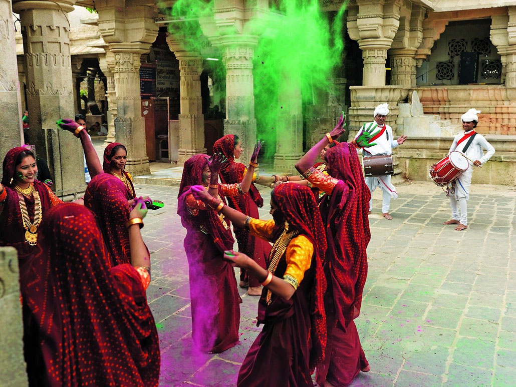 In Gujarat, Holi is closely tied to devotion, especially in regions influenced by Krishna traditions. The festival begins with Holika Dahan, followed by temple visits, folk songs, and community celebrations. Rather than excess, Gujarat’s Holi reflects simplicity, shared meals, and collective joy, highlighting strong social bonds and spiritual undertones woven into everyday life. For luxury travellers, this offers a calm, authentic insight into local life—often experienced through heritage stays, private temple visits, and curated interactions with local communities.
