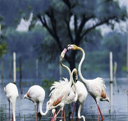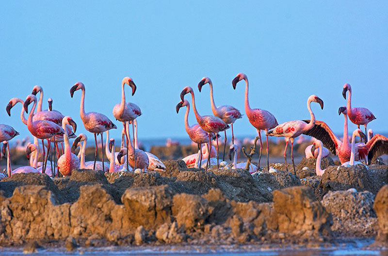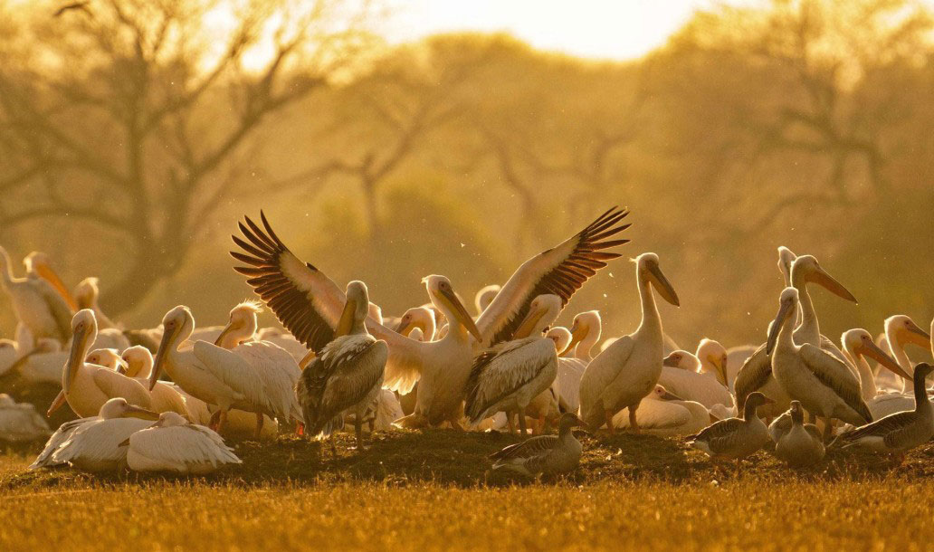 Spread over 120 square kilometres, Nal Sarovar is a tranquil mosaic of lakes, islands, and reed-lined shores. During migration, Greater Flamingos, Pelicans, and Spoonbills gather in dazzling numbers, painting the horizon with movement. A dawn boat ride offers the best chance to watch flocks rise with the mist — a moment of quiet splendour as the lake mirrors the changing skies of autumn.